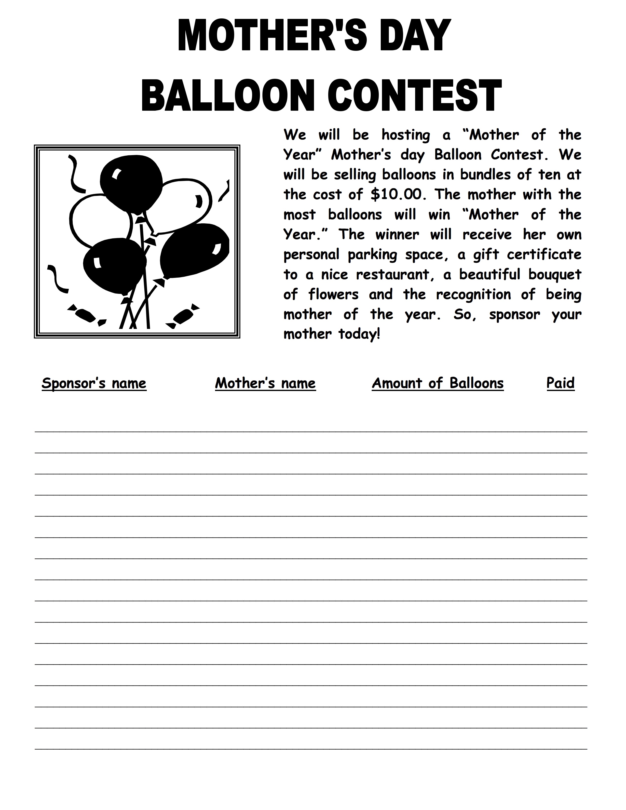 BALLOONS FOR MOM – MOTHER OF THE YEAR CONTEST